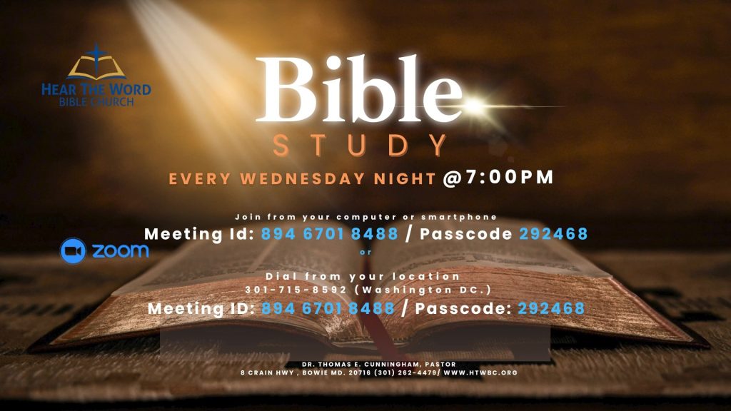 - Bible Study - Virtually on Wednesdays at 7pm. You can connect with us from your computer, tablet or smartphone using Zoom (Log-in information can be found by clicking the Calendar of Events tab).